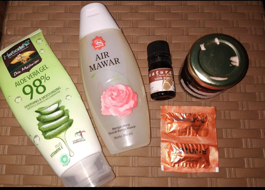 1 Soft Capsule Vitamin E (misal Natur-E 300): Vitamin E adalah antioksidan yang oke banget buat memperkuat skin barrier. Ini rahasia biar kulit kamu kelihatan plumpy dan kenyal.