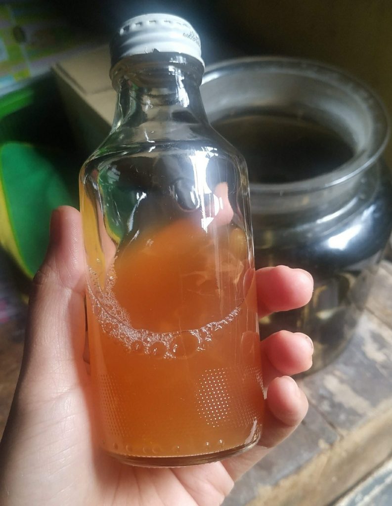 Nah, solusinya gini biar kulit kamu nggak kaget atau iritasi parah. Kamu nggak boleh pakai cuka ini murni tanpa campuran air. Aku sendiri lebih suka pakai botol kaca bekas vitamin (seperti botol You-C) karena cuka ini sifatnya strong acid. Kalau disimpan di botol plastik dalam waktu lama, takutnya terjadi reaksi kimia antara asam cuka dan plastiknya. Lebih afdol pakai kaca, kan?